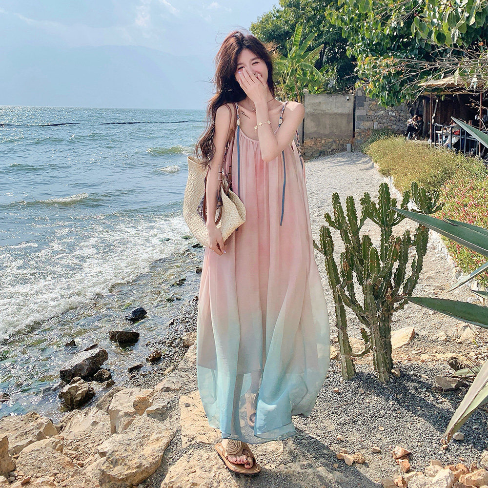 Super fairy beautiful gradient dress women's 2025 summer new high-end temperament resort-style sundress