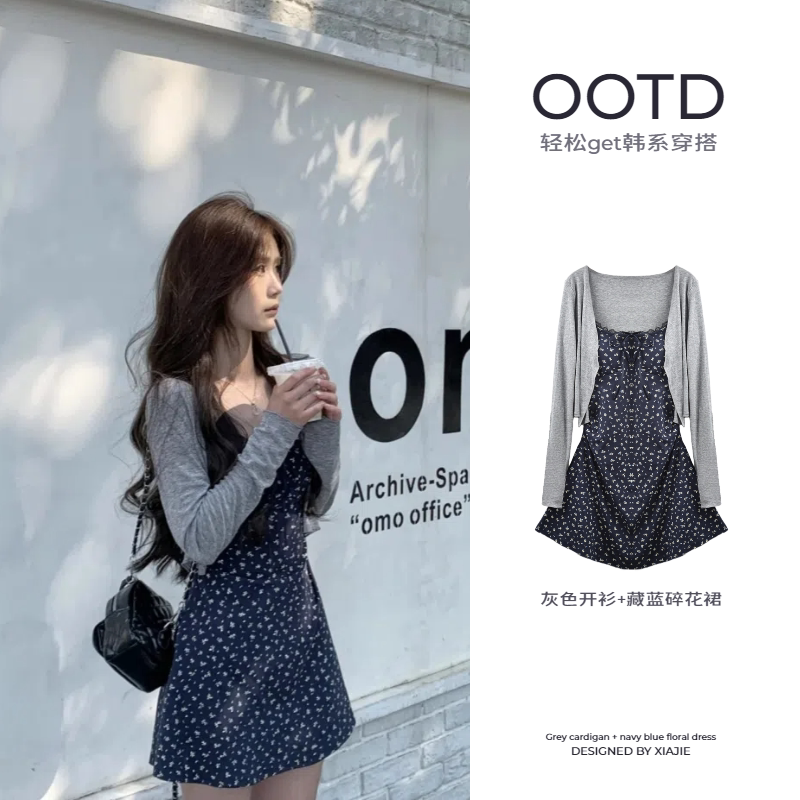 Floral slip dress with chest pad skirt 2026 new summer with cardigan small man beautiful Korean outfit