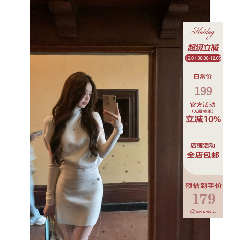 YOLO SHOP [Super absolute waist-to-hip ratio] autumn and winter atmosphere irregular off-the-shoulder dress slimming hip skirt