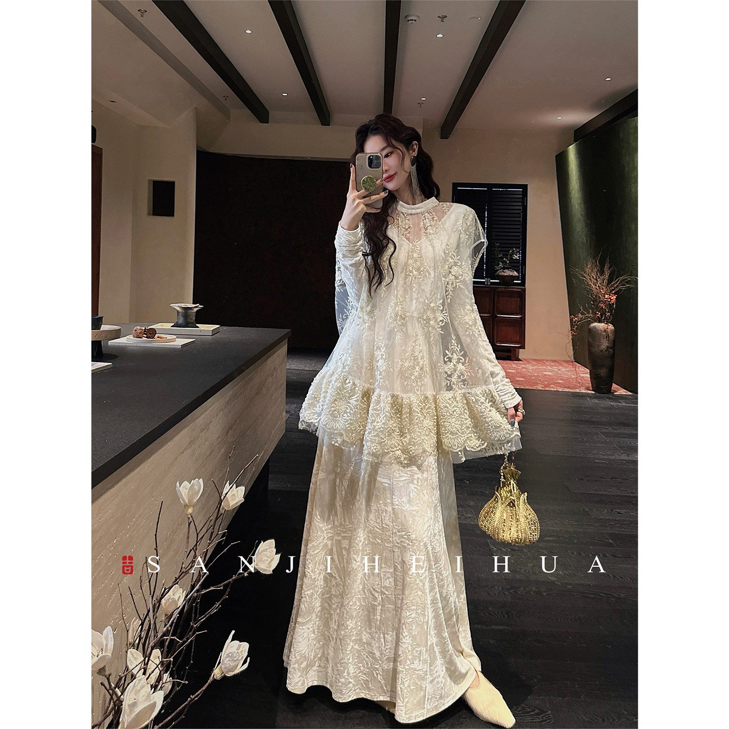 Sanji Black Flower [Linlang] New Chinese nail bead embroidered velvet autumn and winter dress New Year's robe long skirt