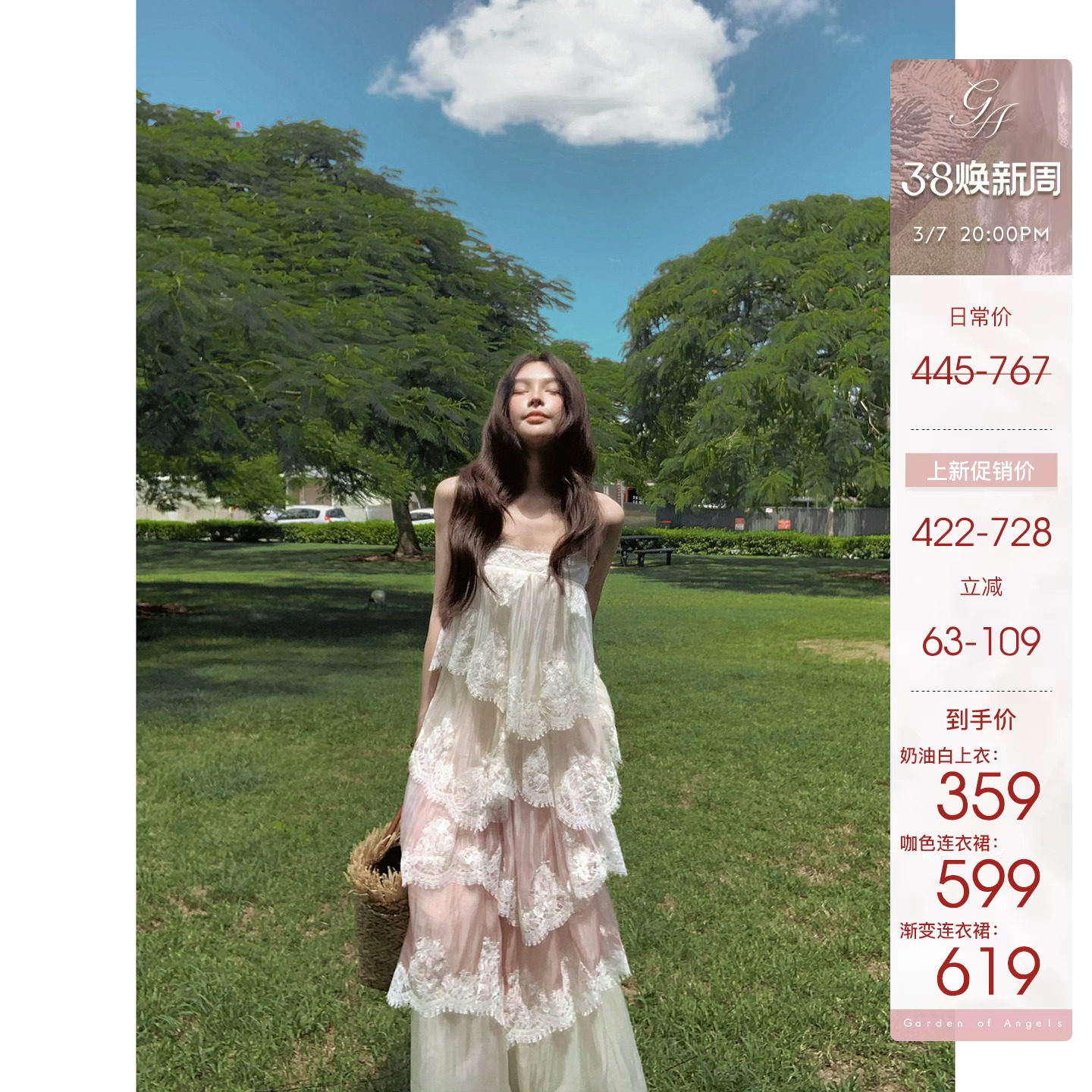 TOROON Lace Edge Slip Dress Women's Spring Cake Skirt Length/Short Suspender Top in three versions