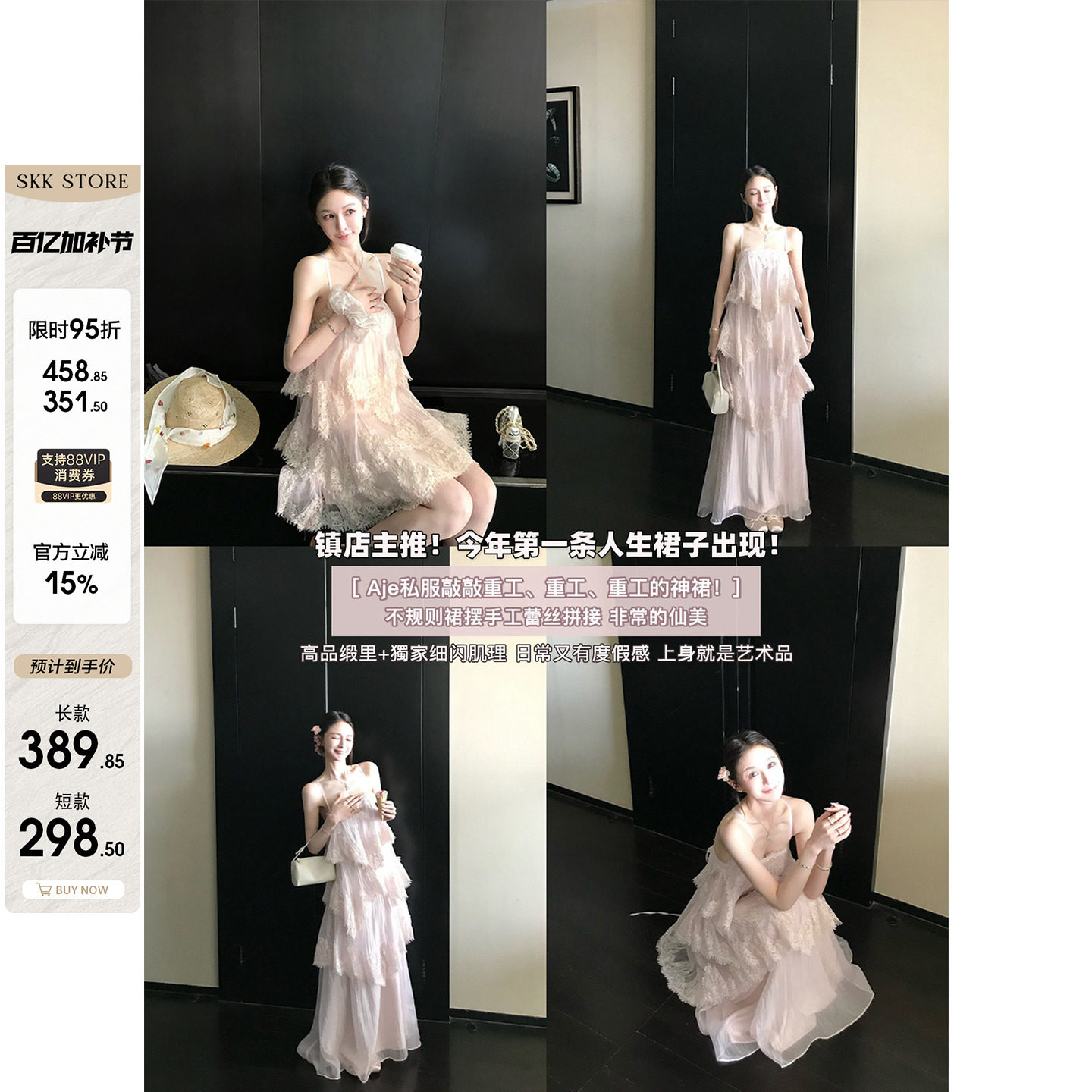 Skk Store in place god Aj* high-quality texture heavy work lace suspender dress long/short spring and summer women