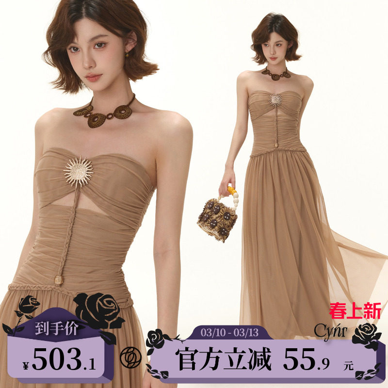 CYNR original design Greek goddess temperament sexy bandeau hot girl dress braided rope waist slimming long skirt