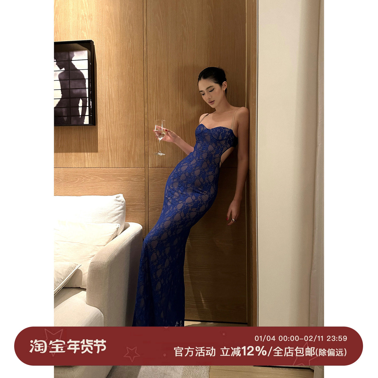 rovente royal blue resort dress women's slim suspender open back mermaid hip wrap birthday dress maxi dress