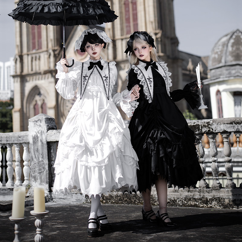 Letters and Poems Nocturne | WP original sub-brand Gothic nun black long and short op sleeve apron is worn more