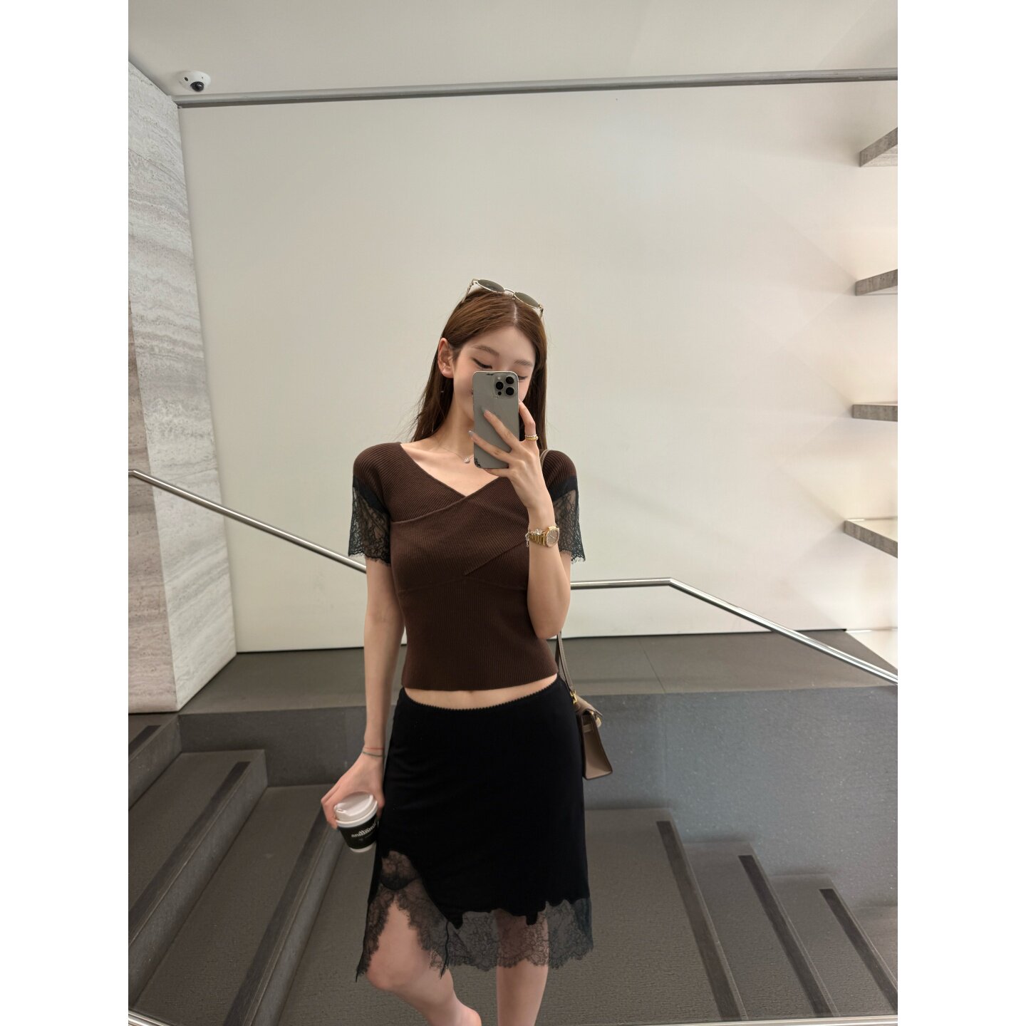 yangzifan 4 sheep wool blend skirt women's lace irregular patchwork short skirt