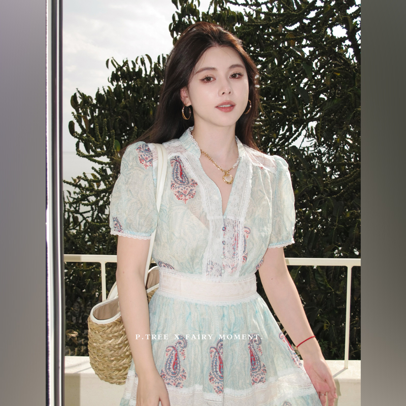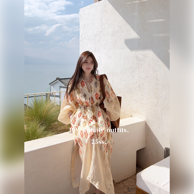 P.tree "Berlin Diary" 100% ramie 5m large pendulum French lace ethnic style dress