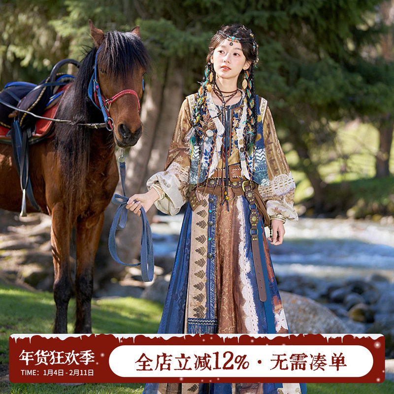 Thirteen more cardamom [desert song] exotic style embroidered vest crew neck shirt tattered skirt Hanfu women's style adult