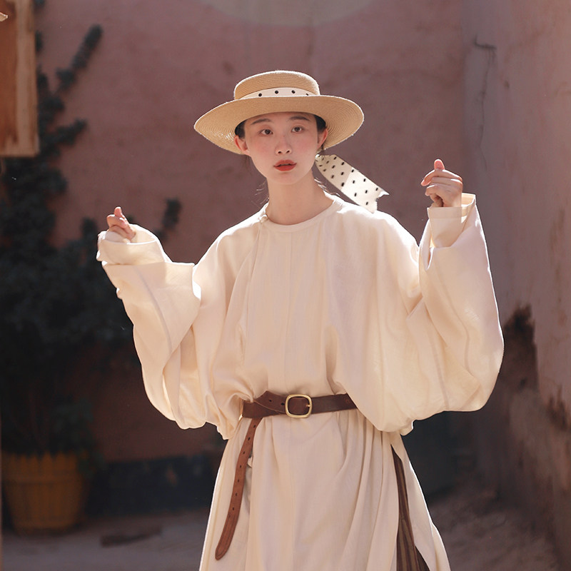 Mystery Ah Huang Zhongle plain round neck robe, Tang Spring and Autumn gown, women's restoration of the new Chinese daily dress, women's Hanfu