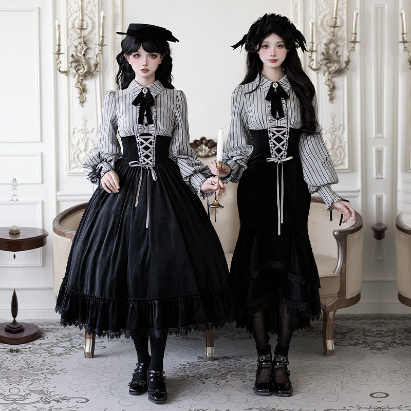 Letters and poems, the end of the curtain|WP original sub-brand fake two pieces of fishbone op mermaid skirt twin winter lolita