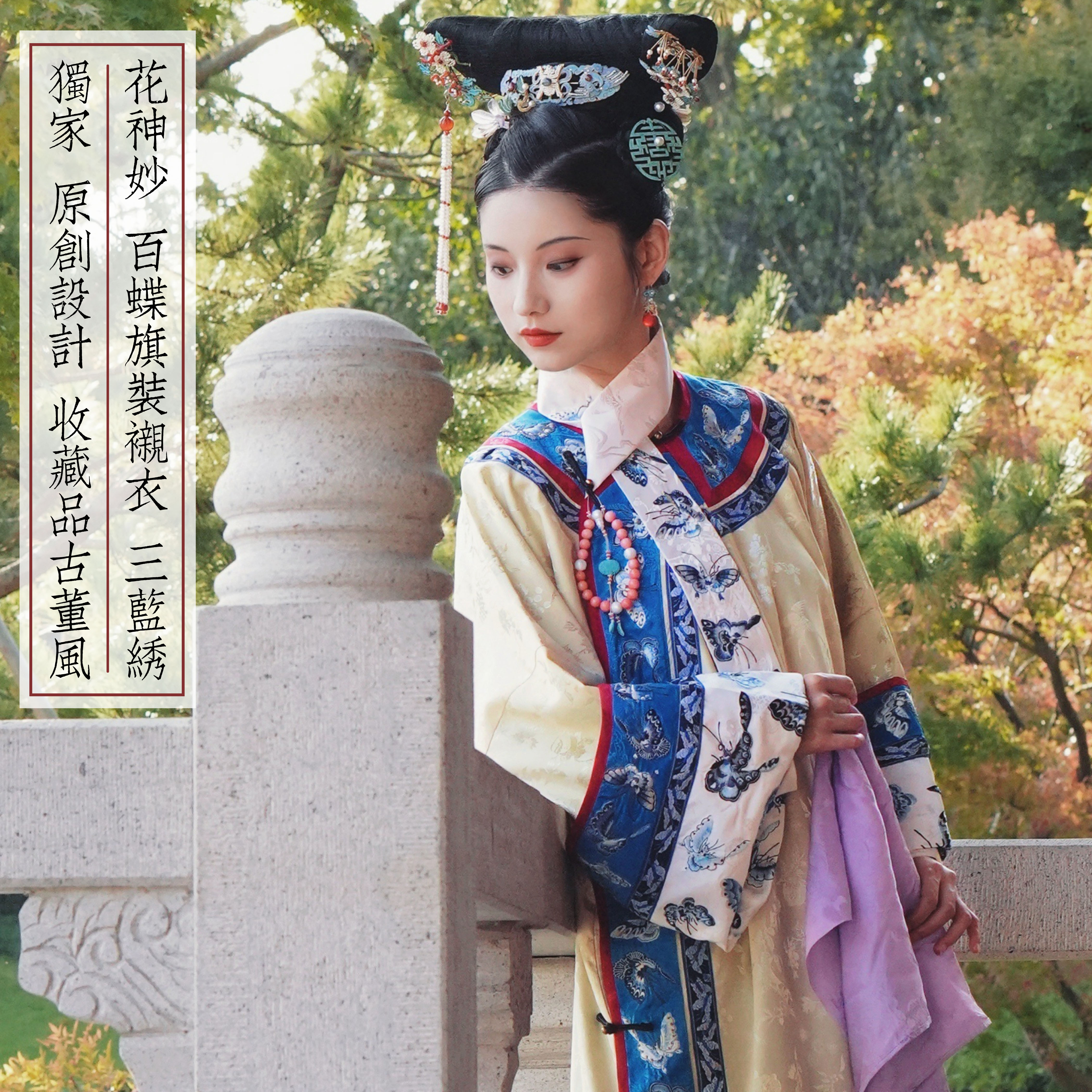 Yu Bai's new Chinese style [Qingshan Xing] Blue Butterfly original design women's improved daily dress cold jacquard embroidery