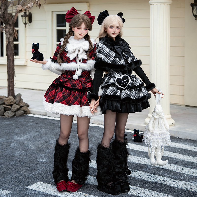 Letter and poem Snow Night Wish|WP original sub-brand three-section plaid jsk fleece shawl twin winter lo skirt