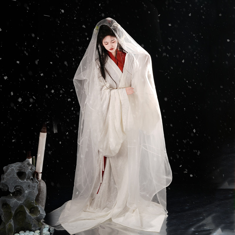 Shan Chi [Wen Ji] Hanfu Warring States robe restoration red and white lace double-layer spring, autumn and winter daily fairy spirit on camera