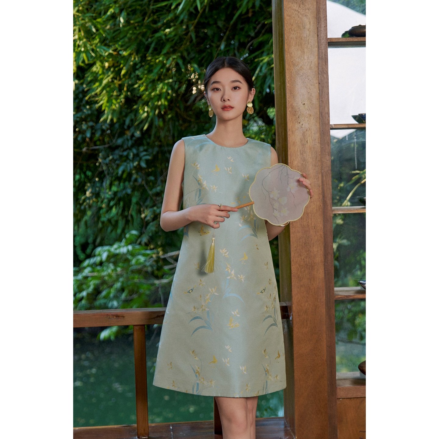 Nian Twelve [Oriental Zhaoming] Linen acetate peony embroidery hollow lace dress new Chinese style sleeveless