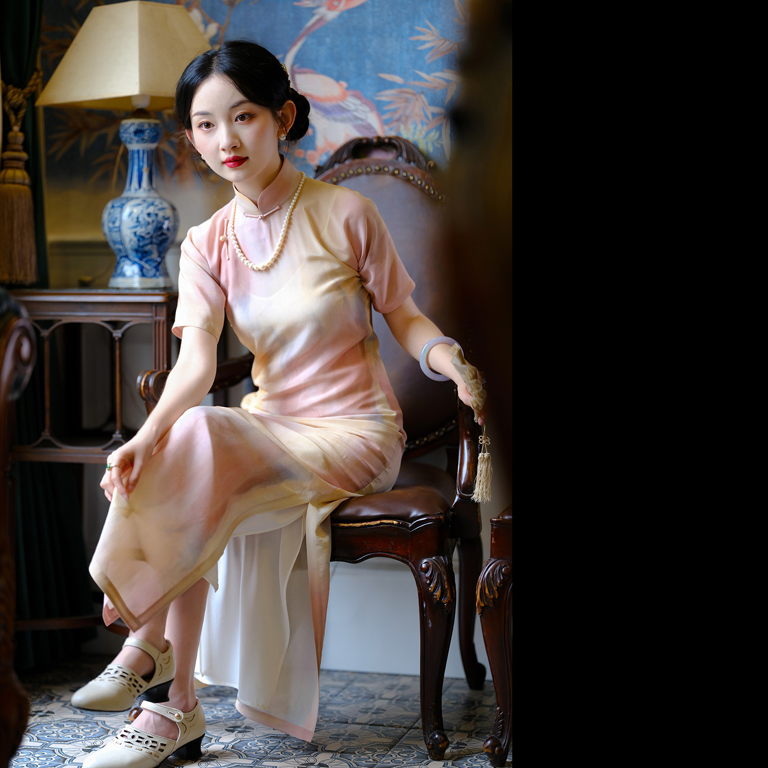 Meng Qingzhi丨A city of wind catkins丨Republic of China style embroidery hand-buckled inverted long-sleeved cheongsam skirt daily engagement toast