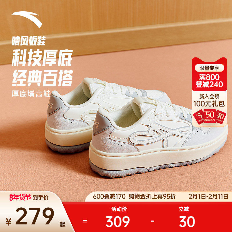 【Guan Xiaotong's same style】Anta Qingfeng丨Thick-soled low-top board shoes women's 2025 winter new height-increasing sneakers
