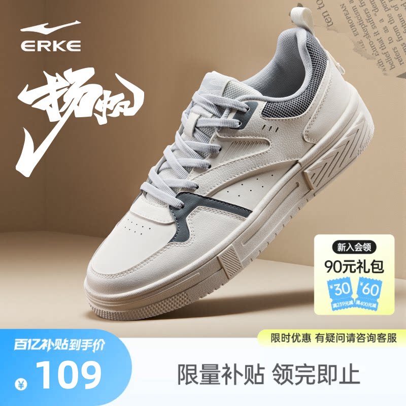 Hongxing Erke board shoes, men's shoes, spring new white casual shoes, lightweight men's sneakers, thick-soled white shoes