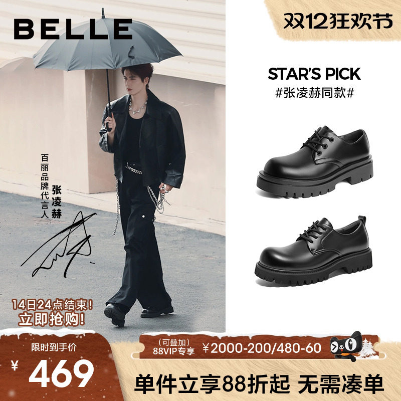 Zhang Linghe's same Belle men's shoes winter new thick-soled heightened leather shoes big-toe casual derby shoes A1434AM4