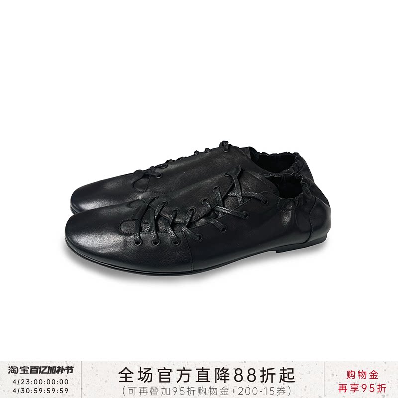 JCAESAR LEATHER SHOES diagonal lace-up shirring German leather shoes top layer cowhide back cuff shirring