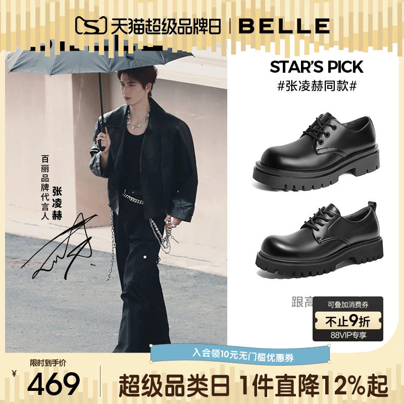 Zhang Linghe's same Belle men's shoes in summer, new thick-soled heightened leather shoes, big-toe casual derby shoes, A1434AM4