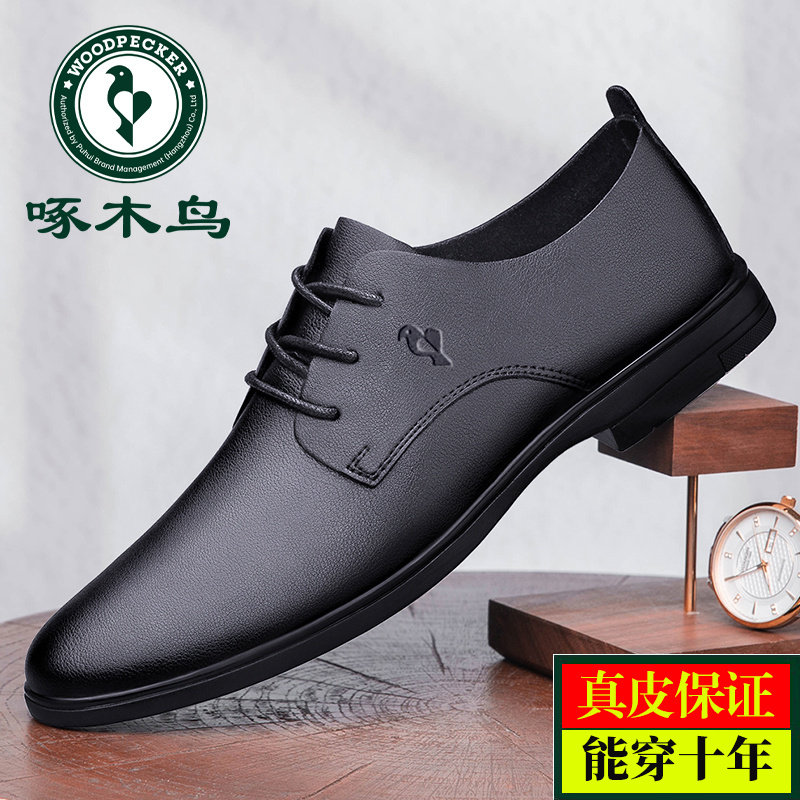 Woodpecker Men's Casual Business Formal Leather Shoes Men's Genuine Leather Breathable Black British Autumn New Men's Shoe Trend