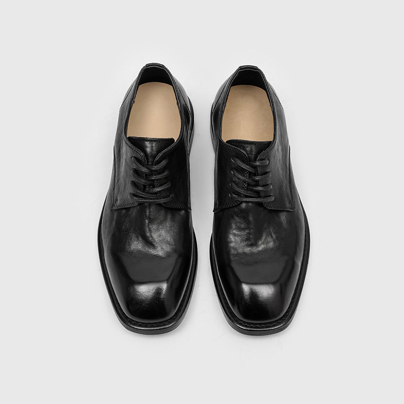 Round toe dark pioneer lace-up top layer horseskin Goodyear washed old handmade derby leather shoes 992
