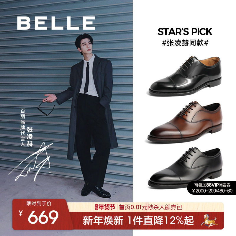 Zhang Linghe same Belle shoes men's business formal Oxford leather shoes men's inner height increase three-joint wedding shoes 59736