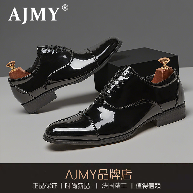 French AJMY Men's Shoes 2025 New British Glossy Patent Leather Three-Joint Business Formal Wedding Oxford Leather Shoes