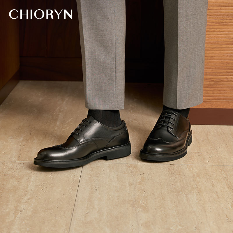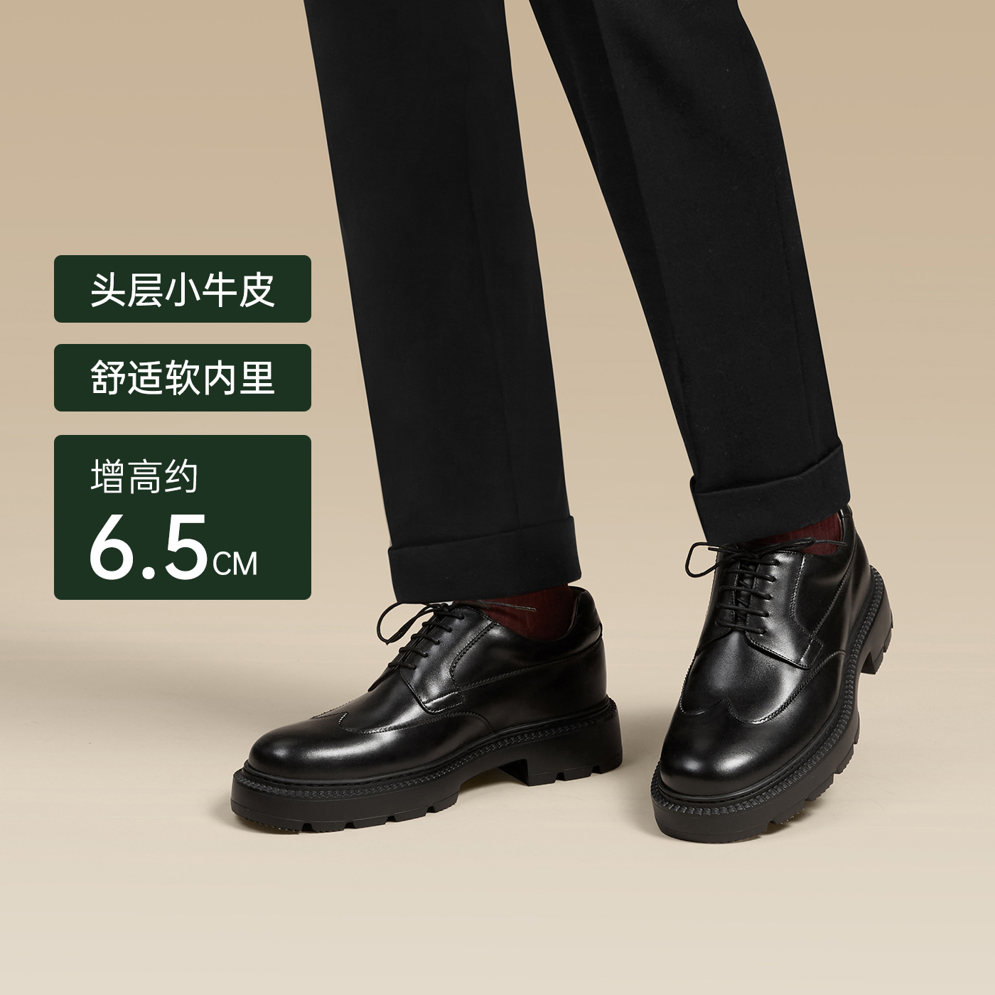 【Wu Lei's same style, height increase of about 6.5cm】ZUTI formal leather shoes, men's round toe thick-soled derby shoes, casual autumn and winter