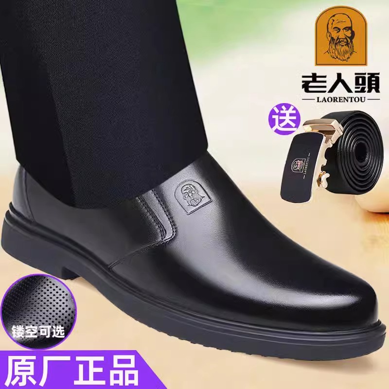 Elderly scalp shoes men's 2025 autumn leather breathable plush cowhide shoes soft sole business casual middle-aged dad shoes