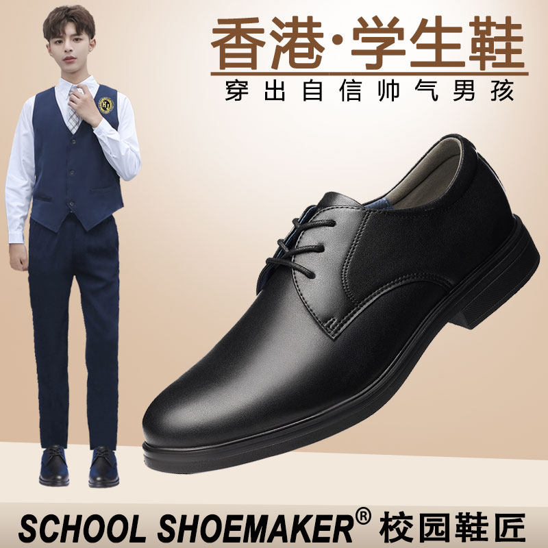 Middle school student leather shoes, male teenagers, Hong Kong college children, black leather, high school junior high school boys, Shenzhen school uniform shoes
