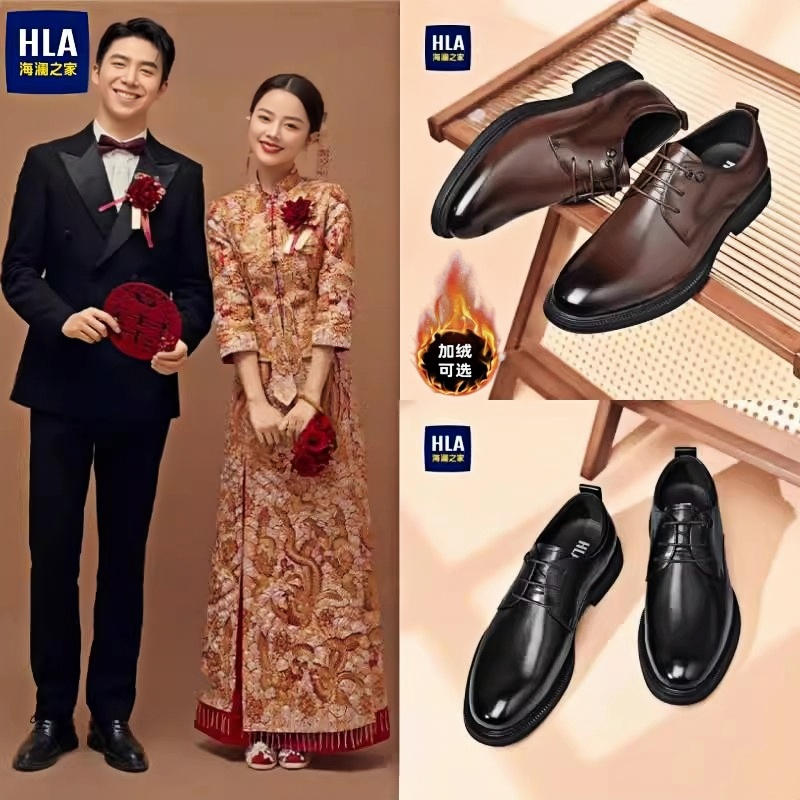 HLA/Heilan Home Men's Shoes Formal Pointed Toe Heightened Leather Shoes Business Winter New Shoes Wedding Groom Shoes Plush