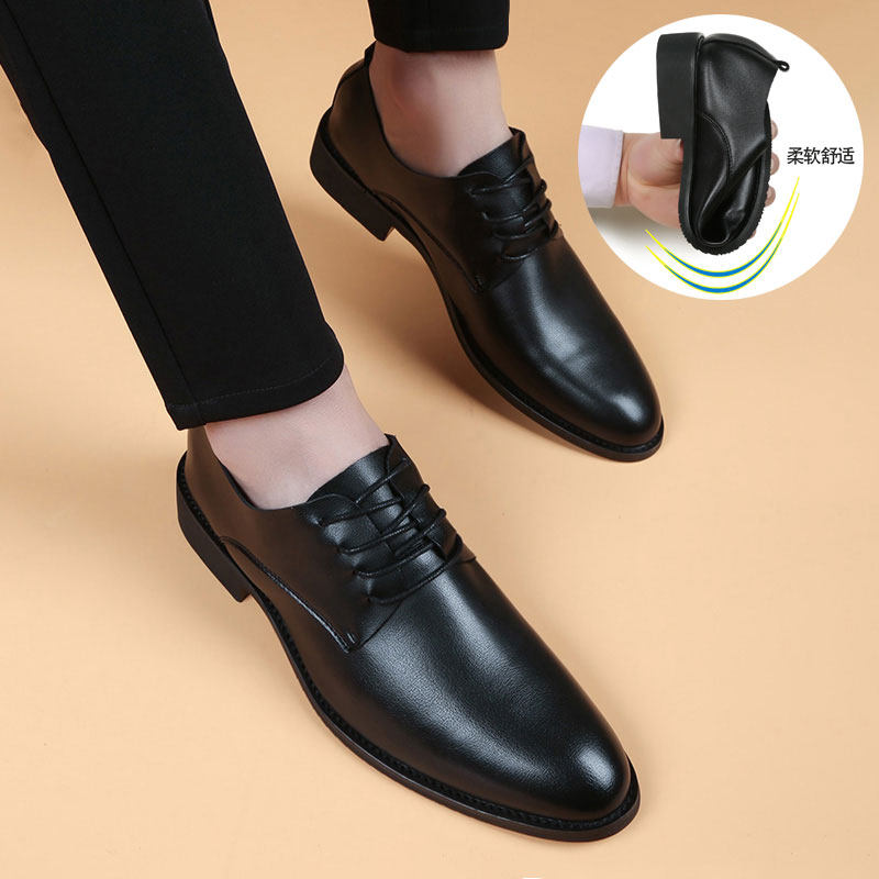 Inner height leather shoes men's new business formal British style leather soft sole casual men wedding groom leather shoes