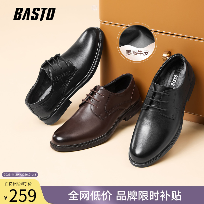 Moccoli business dress men's shoes leather commuting to work wedding derby top layer cowhide Japanese big toe casual leather shoes