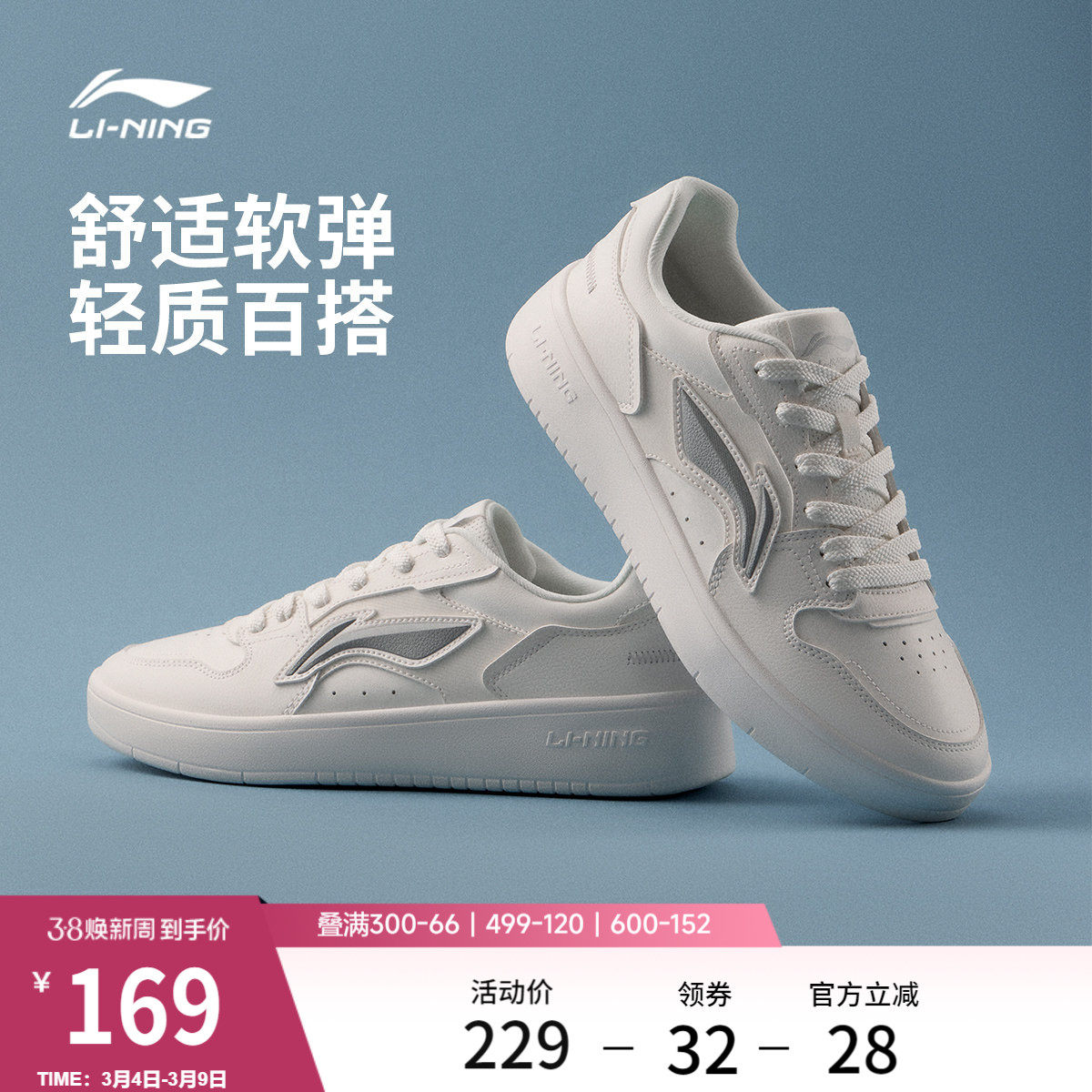 Li Ning white shoes | Board shoes, women's shoes, casual shoes, spring lightweight soft soles, comfortable and versatile shoes, height-increasing sneakers