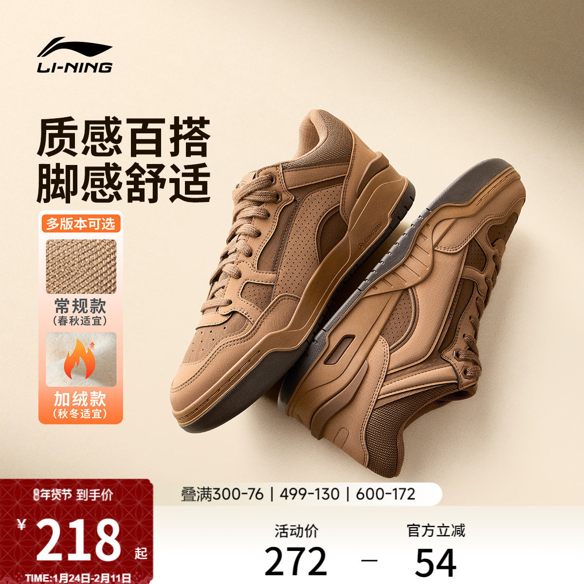 Li Ning Yuebai 2 MID casual shoes men's shoes winter new fleece retro black board shoes mid-high top sneakers