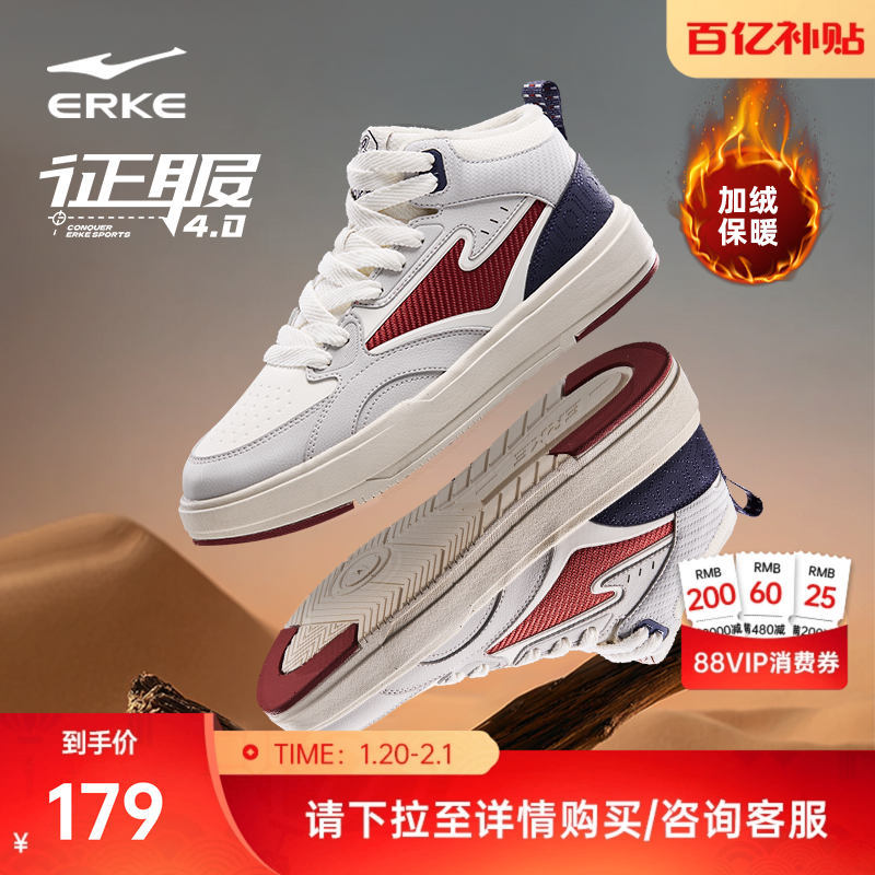 Conquer Hongxing Erke men's shoes sneakers, winter new big cotton shoes, fleece men's shoes, high-top thickened board shoes