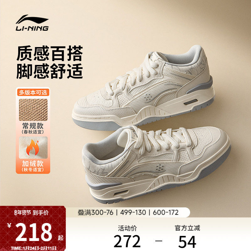 Li Ning Board Shoes Women's Shoes Ingots 2026 Winter New Casual Shoes Pink Platform Skateboard White Shoes Sneakers