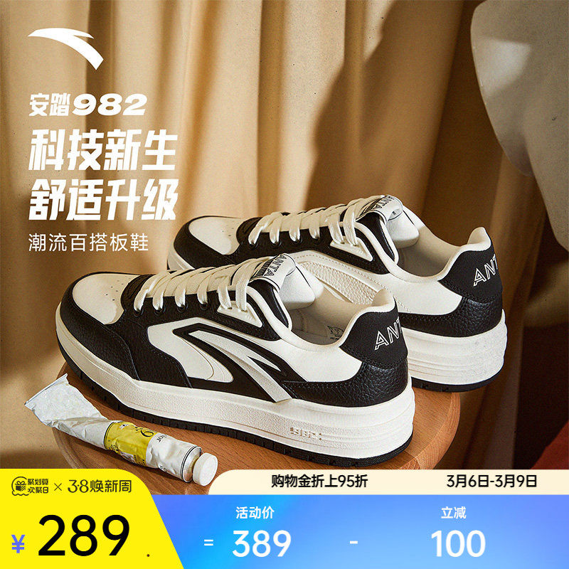 【Wang Yibo Same Style】Anta Cyber丨Racing style classic low-top black and white board shoes, women's white shoes and sneakers