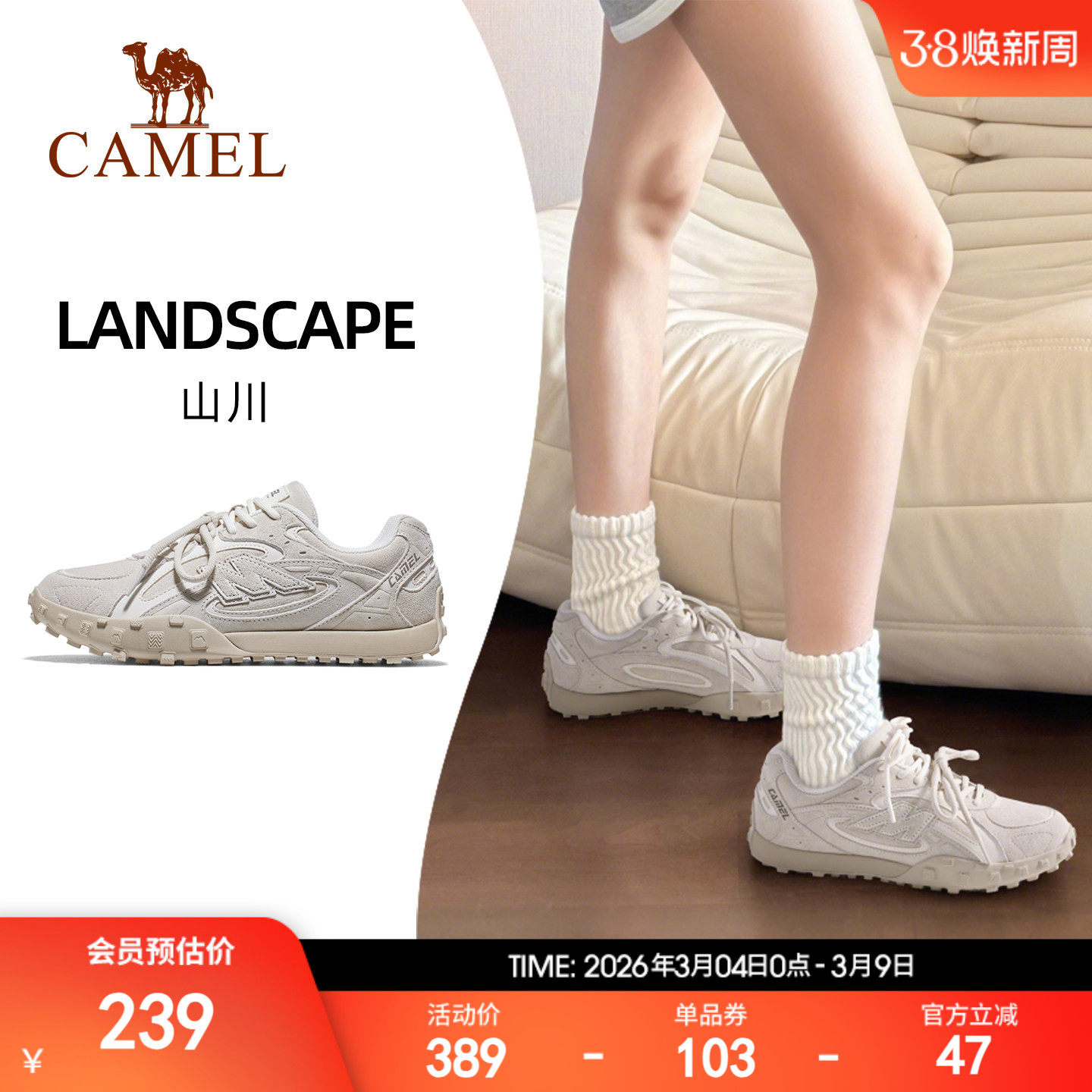 Camel Mountain River Shoes Women's 2026 Spring New Versatile Retro Casual Shoes Non-slip Comfortable Sneakers Moral Training Shoes
