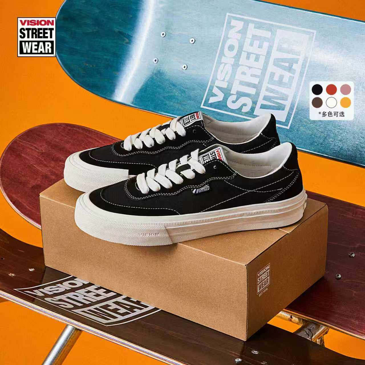 VISION official FLAT TOP multi-color low-top suede canvas shoes street sports skateboard shoes for men and women