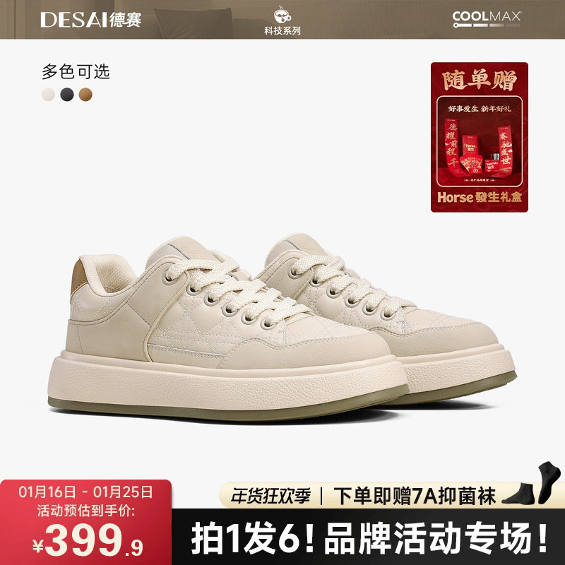 Desay [Small Fragrance Wind Ridge Pattern] Winter thick-soled versatile leather casual shoes men's retro sneakers