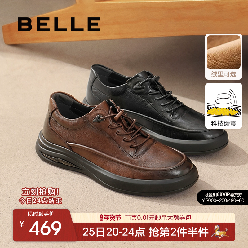 Belle Men's Platform Business Black Board Shoes Winter Cowhide Casual Business Sneakers with Fleece A1685DM4