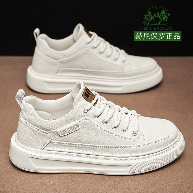 Henny Paul genuine brand white men's shoes leather winter fleece warm casual shoes high-end white shoes for men