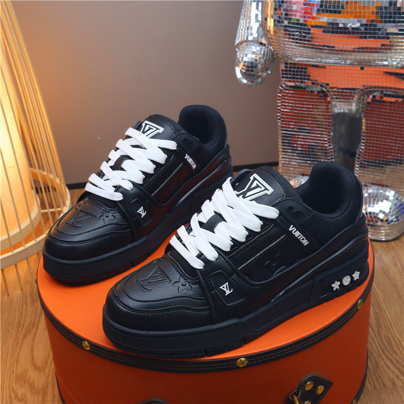 Light luxury trendy brand couple shoes men's 2025 new black warrior upper print round toe low-top shoes student height increase board shoes