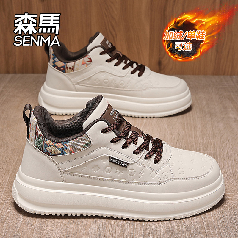 Semir shoes men's shoes 2025 new winter fleece warm cotton shoes men's leather casual height-boosting small whiteboard shoes