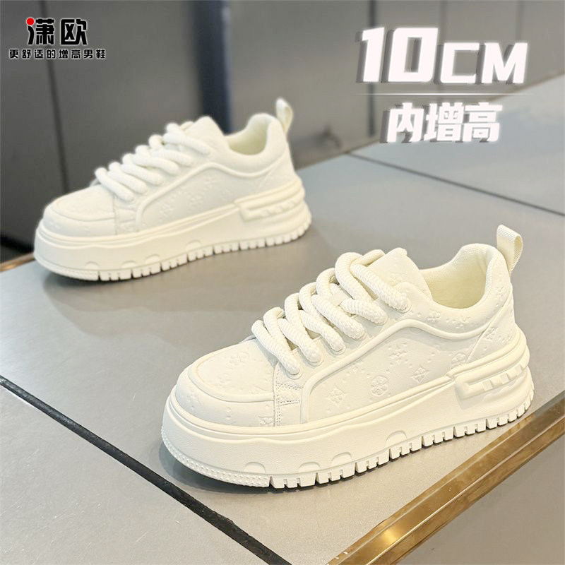 Becerefe Men's Shoes 2026 New Platform Heightened Leather Breathable White Shoes Athleisure Versatile Board Shoes Trend