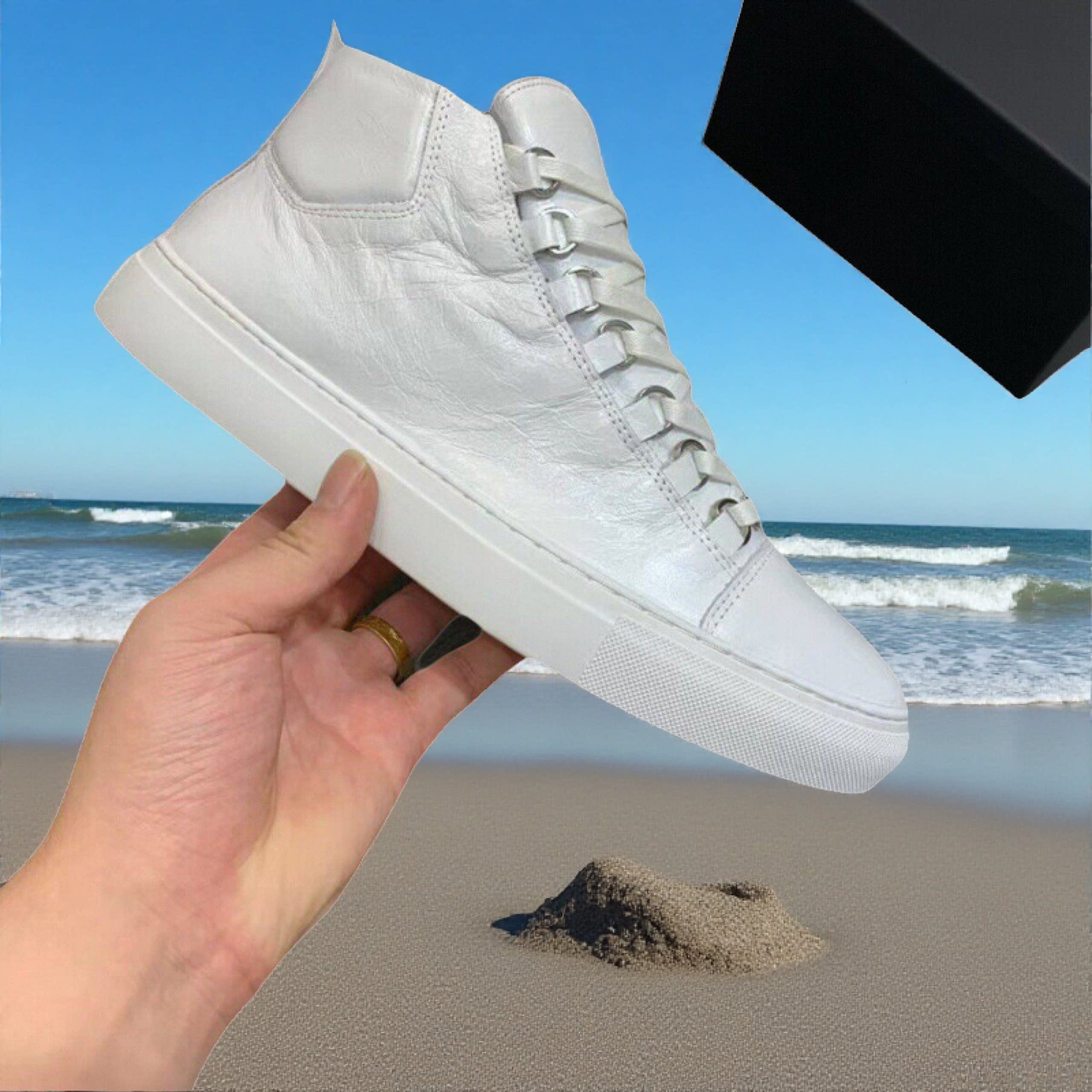 Paris trendy foreign trade men's shoes, high-top board shoes, white pleats, leather fashion lace-up youth casual sneakers factory
