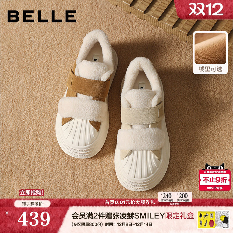 Belle retro small whiteboard shoes, new cotton shoes, fleece thick soles, heightened shell heads, wool bread shoes B2919C