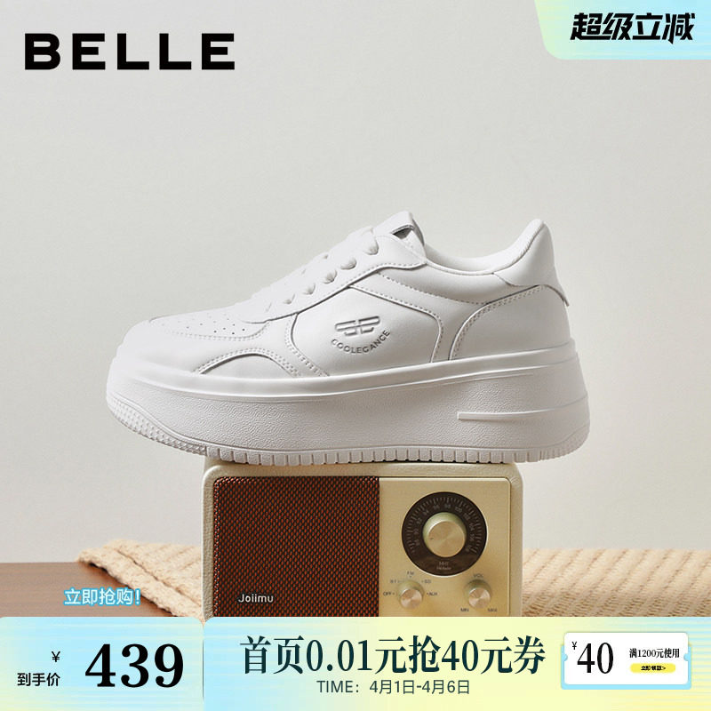 Belle Comfort Imprint Thick-soled Mesh White Shoes Women's 2026 New Inner Height Increase Casual Board Shoes B3058A Pre